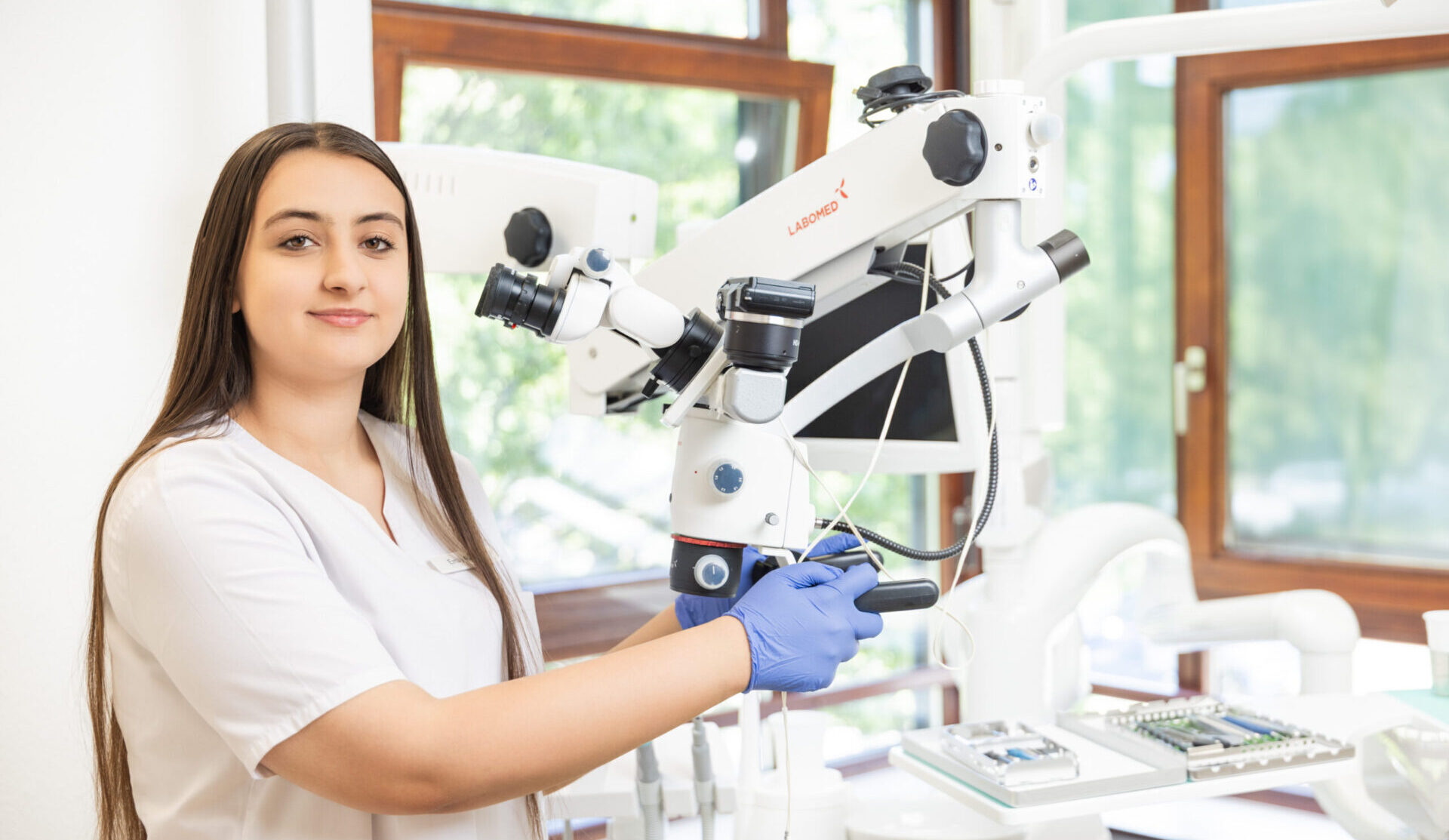 Ihr Hauptaufgabenbereich ist die Stuhlassistenz. Besonders gerne assistiert sie bei Wurzelkanalbehandlungen unter dem Dentalmikroskop und bei konservierenden Eingriffen. An ihrer Ausbildung schätzt Sie besonders den Umgang mit unseren Patienten und die Möglichkeit in vielen unterschiedlichen Bereichen dazuzulernen. So gestaltet sich der Arbeitsalltag immer spannend.